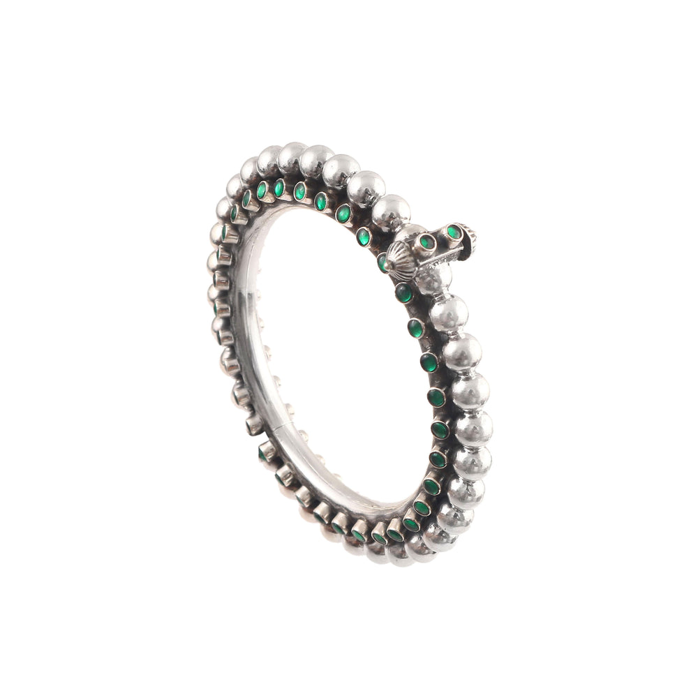 This Bangle is Handcrafted in Silver, Embellished Green Pota Gemstone