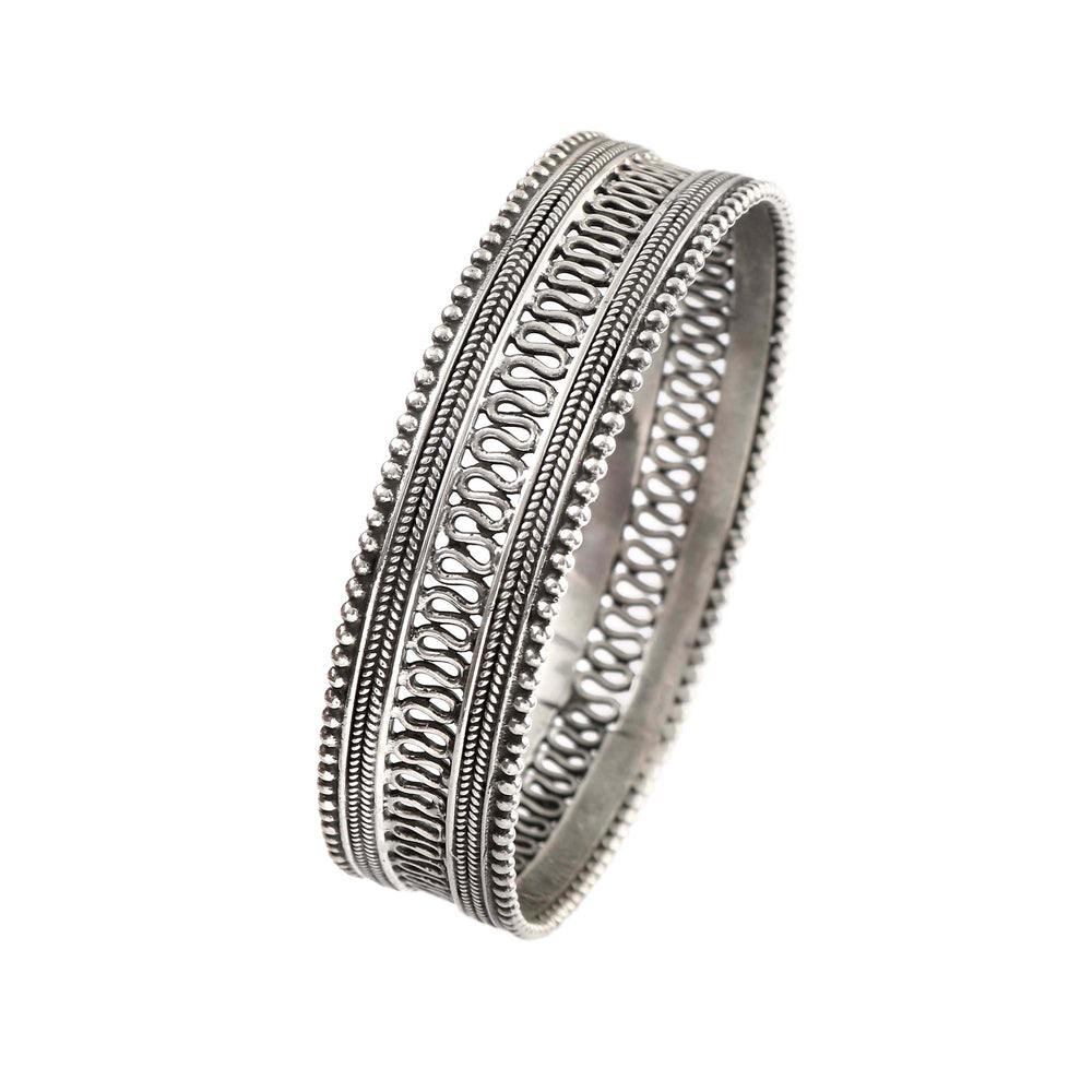 This Bangle Is Handmade In Silver, Embellished Rawa Work