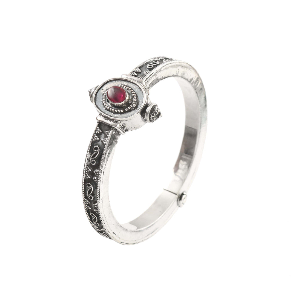 This Bangle Is Handmade In Silver, Embellished Pink Color Stone & Rawa Work