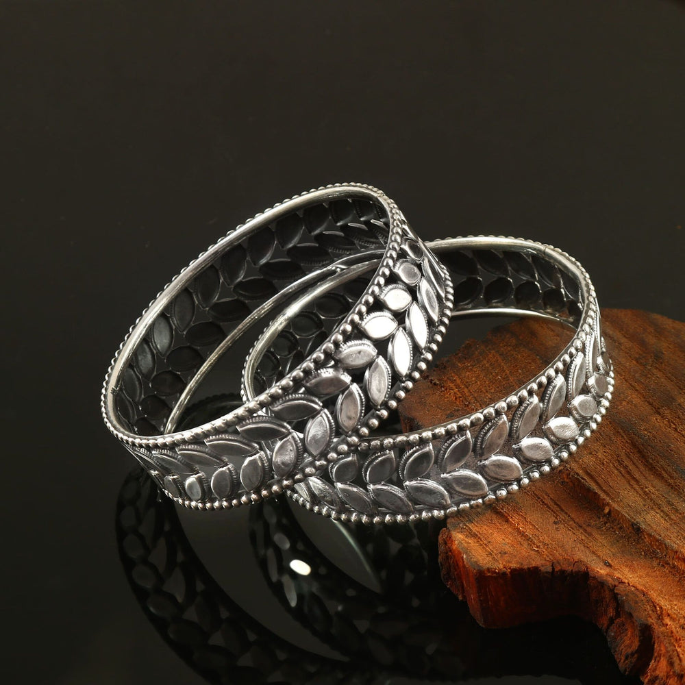 These Bangle Are Handcrafted In Silver, Beautiful Leaf Design.