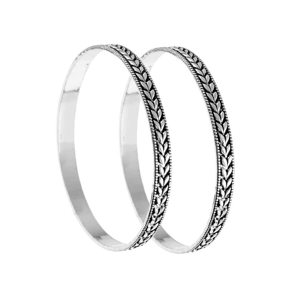 This Bangle Is Handcrafted in Silver, Embellished Leaf Design