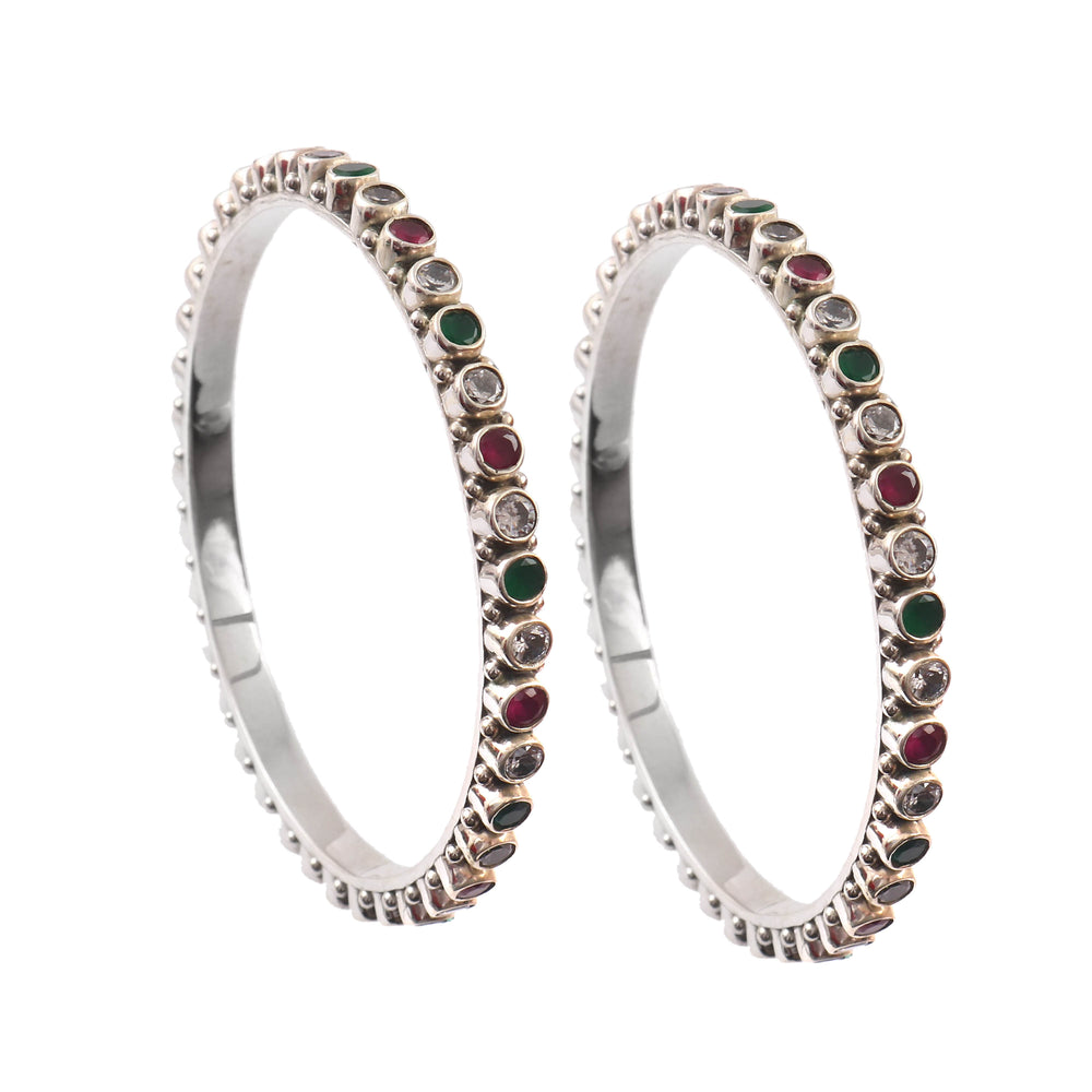 These Bangle Are Handmade in Silver, Embellished Multi-Color Cut-Stones