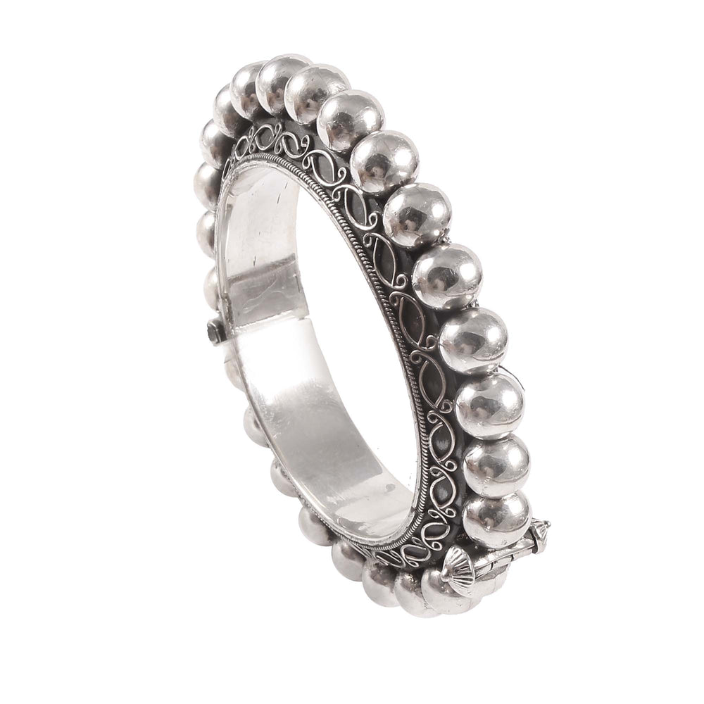 This Bangle Is Handcrafted In Oxidized Silver, Floral Design With Embellished Rawa Work.