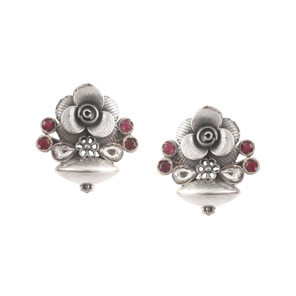 Beautiful Silver Floral Ear Studs