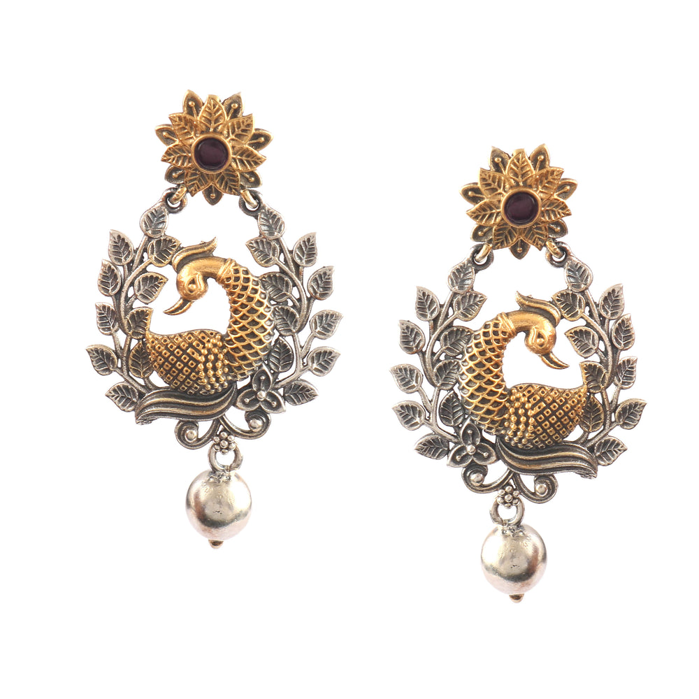 These Earrings Are Handmade in Silver, Adorable Peacock Design in Embellished Ruby Gemstone