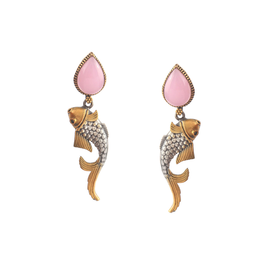 These Earrings Are Handmade in Silver, Embellished Rose Quartz Stone in Fish Design