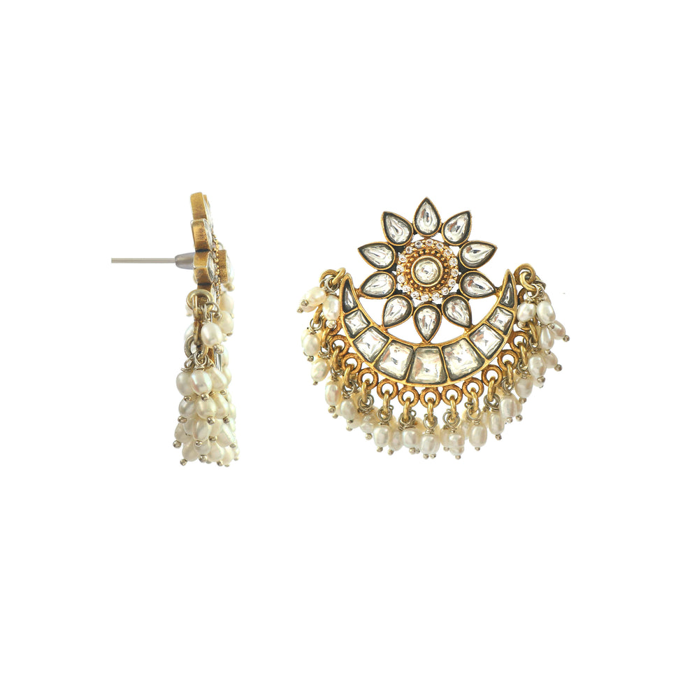These Earrings Are Handmade in Silver, Embellished Kundan-Jadau Work in Sun-Floral Design