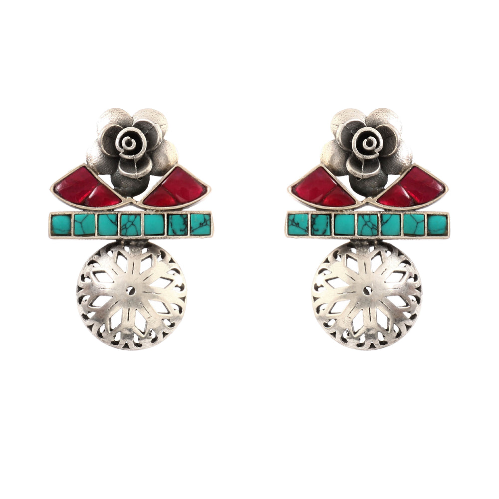 Silver Firoza-Pink Stud Earrings