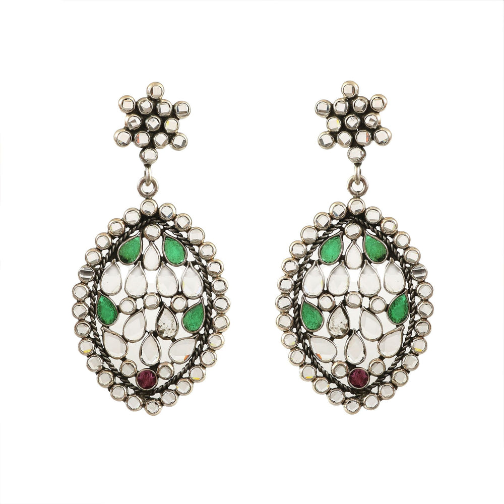 These Earrings Are Handcrafted In Silver, Embellished Checker Stone In Tear-drop Design