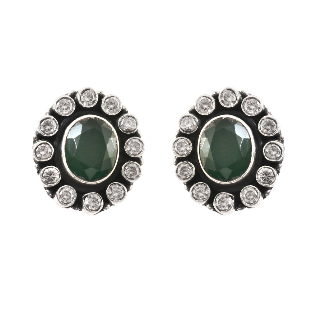 Floral Earrings Crafted in 925 Sterling Silver Featuring Cutstone Embellished
