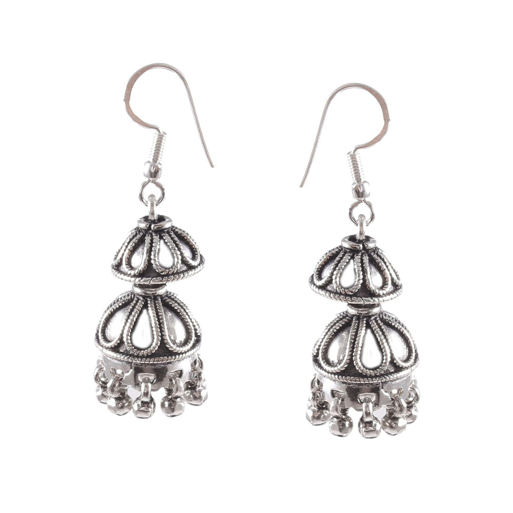 These Ghungroo earrings are Crafted in Silver, Tear-Drop Design, and Rawa Work.
