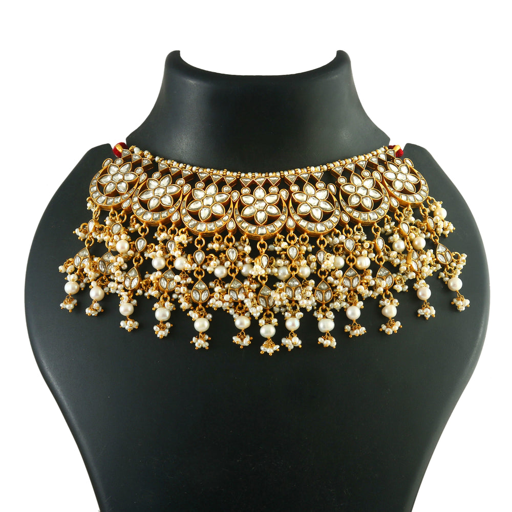 Adorable Gold-Plated Silver Floral Kundan-Jadau Necklace