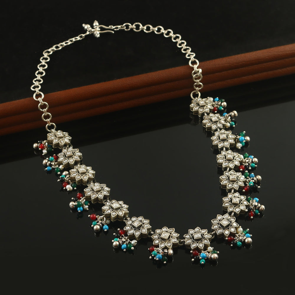 This Necklace is Handmade in Silver, Embellished White Kundan-Jadau Work