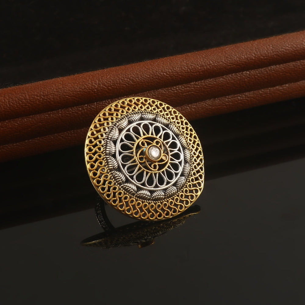 This Ring is Handmade in Silver, Embellished Floral Design & Dual Tone Plated Silver